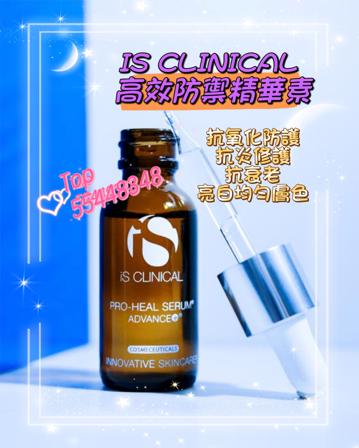 IS CLINICAL 高效防禦精華素 PRO-HEAL SERUM 30ml/60ml 💜以左旋維他命 C的領先科技,結合優質橄欖葉精華、純維他 命 E及 A,這個超強的配方大大提升抗氧化保護,同時改善受損肌膚、暗瘡肌及老化問題。 🥰ADVANCE+®️ 維他命C、橄欖葉精華、維他命E、硫酸鋅能高效抗炎降紅,緩和暗瘡及玫瑰痤瘡,幫助減輕皮膚炎症,包括濕疹。 卓越抗氧修護功效。 專為修護、抗氧化和舒緩設計的頂級精華液,結合醫學級成分與先進生物科技,適合敏感、受損或炎症肌膚,同時提供強效抗老化保護。以下是詳細介紹: 核心功效 1. 抗氧化防護: •中和自由基,抵禦紫外線(UV)和環境污染導致的氧化壓力。 2. 抗炎修護: • 緩解泛紅、痘痘、玫瑰痤瘡等炎症問題,促進傷口癒合。 3. 抗衰老: ・刺激膠原蛋白生成,減少細紋與鬆弛。 4.亮白均勻膚色: •淡化痘印、色斑,改善整體膚色不均。 關鍵活性成分 15% 左旋維生素C (L-ascorbic acid): 高濃度穩定型維C,抗氣化並提亮膚色,促進膠原合成。 維生素E(a-生育酚): 與維C協同增強抗氧化效果,修復脂質屏障。 橄欖葉萃取(Olea europaea): 強效抗炎丶抗菌,舒緩敏感肌。 維生素A(視黃醇棕櫚酸酯): 溫和促進細胞更新,改善紋路(比純視黃醇更溫和)。 透明質酸: 深層保濕,減緩維C可能的乾燥感。 適用膚質 敏感肌/炎症肌:如痘痘肌、玫瑰痤瘡、術後修復(雷射/微針後)。 早間防護:搭配防曬霜,強化日間抗氧化屏障。 抗初老需求:預防光老化,改善粗糙與暗沉。 使用方法: 早晚取3-5滴均勻塗於面上及頸部。 #isclinical #isclinica高效防禦精華素